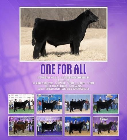 -New At MLC -Name: One For All -Sire: All Me -Dam: Miss Hidden Gem 899 -Breed: Purebred Maine Anjou -Owned By Jared Boyert & Blaine Rodgers -Price: $75/Unit Thru Matt Lautner Cattle Office @ 515.391.9540