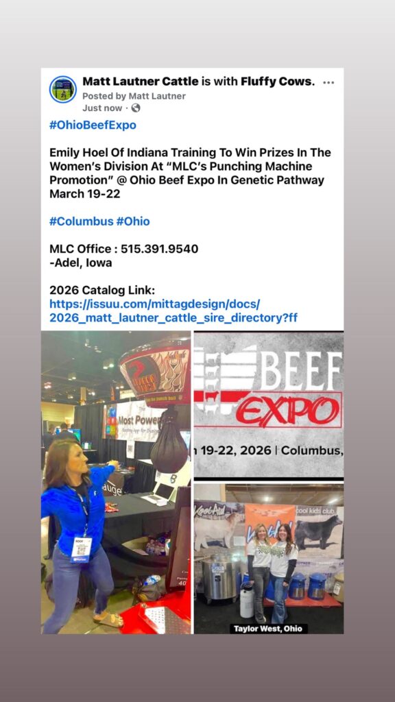 Emily Hoel Of Indiana Training To Win Prizes In The Women’s Division At “MLC’s Punching Machine Promotion” @ Ohio Beef Expo In Genetic Pathway March 19-22